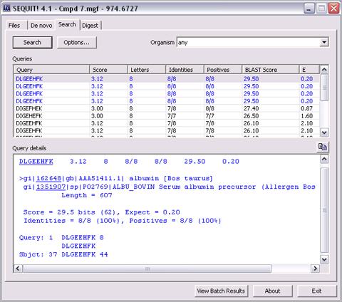- You can process batch data: de novo sequencing with subsequent database searches